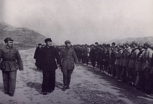 1944年11月,毛澤東和朱德檢閱整裝待發(fā)的八路軍359旅南下支隊