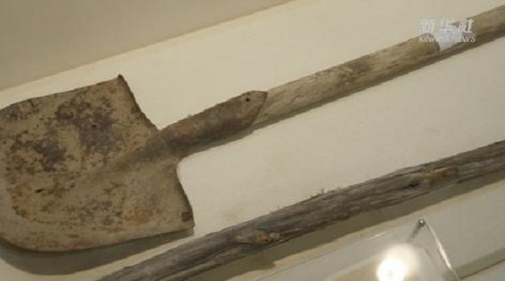 西藏軍區(qū)軍史館收藏的一把鐵鍬。這是修筑川藏公路時(shí),戰(zhàn)士們使用的工具。修筑公路時(shí),西藏運(yùn)輸總隊(duì)政委慕生忠曾在鐵鍬把上刻下“慕生忠之墓”。他說(shuō),如果我死在這條路上,這就是我的墓碑