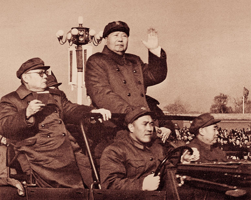 1966年11月26日, 葉劍英陪同毛澤東在北京天安門廣場(chǎng)接見外地來京的師生和紅衛(wèi)兵